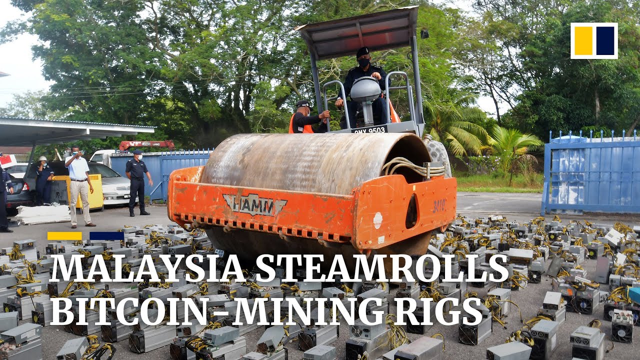 Malaysian Authorities Take Steamroller to Illegal Bitcoin Miners. Over 1000 bitcoin mining machines have been totally destroyed in Malaysia after they were seized for illegally mining the cryptocurrency using stolen electricity.